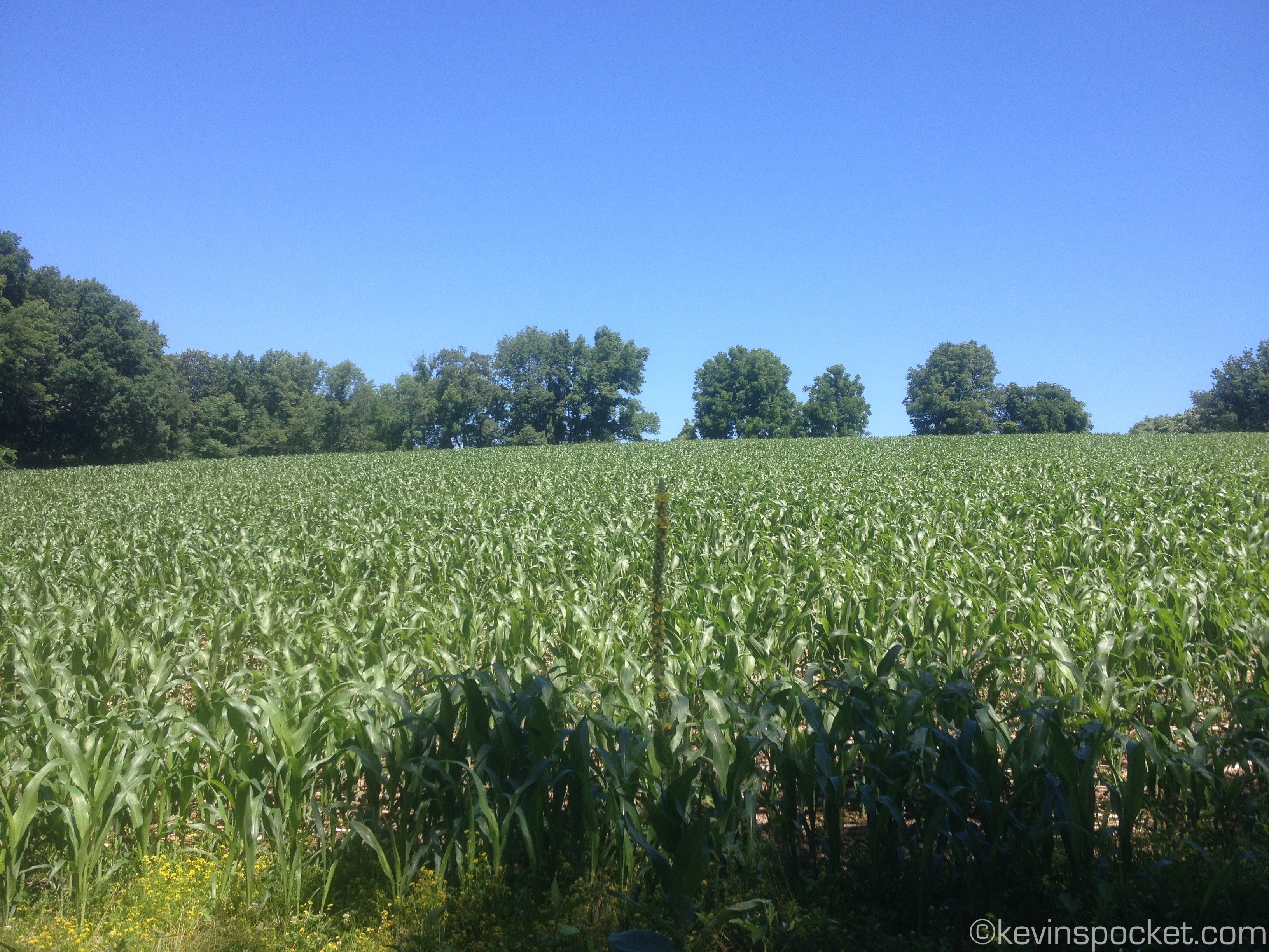 We stayed towards the left at several small forks, and soon found ourselves facing a large corn field. We hiked East along the Southern edge of the mowed field. A left turn at the corner of the field, a few yards through the trees, and we were at our second field. Again, we hiked along the Southern edge and met up with the trail again at the South-East corner of the field.
