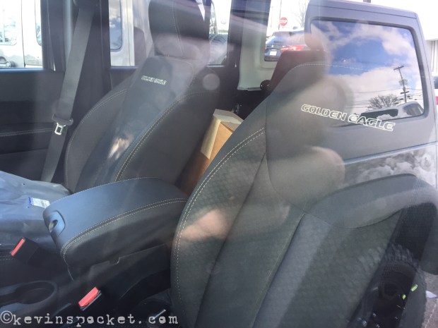 the JK Golden Eagle starts as a Sahara trim, adds Rubicon Hard Rock steel bumpers, a color match top, Golden Eagle seats, and unique Golden Eagle hood decal.